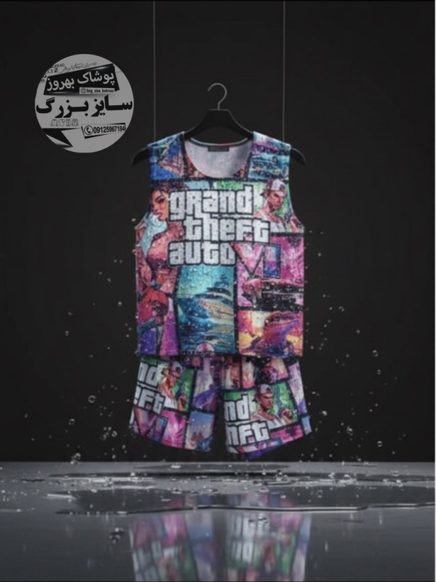 ست تاپ و شلوارک کشی تمام چاپ GTA (فری سایز )