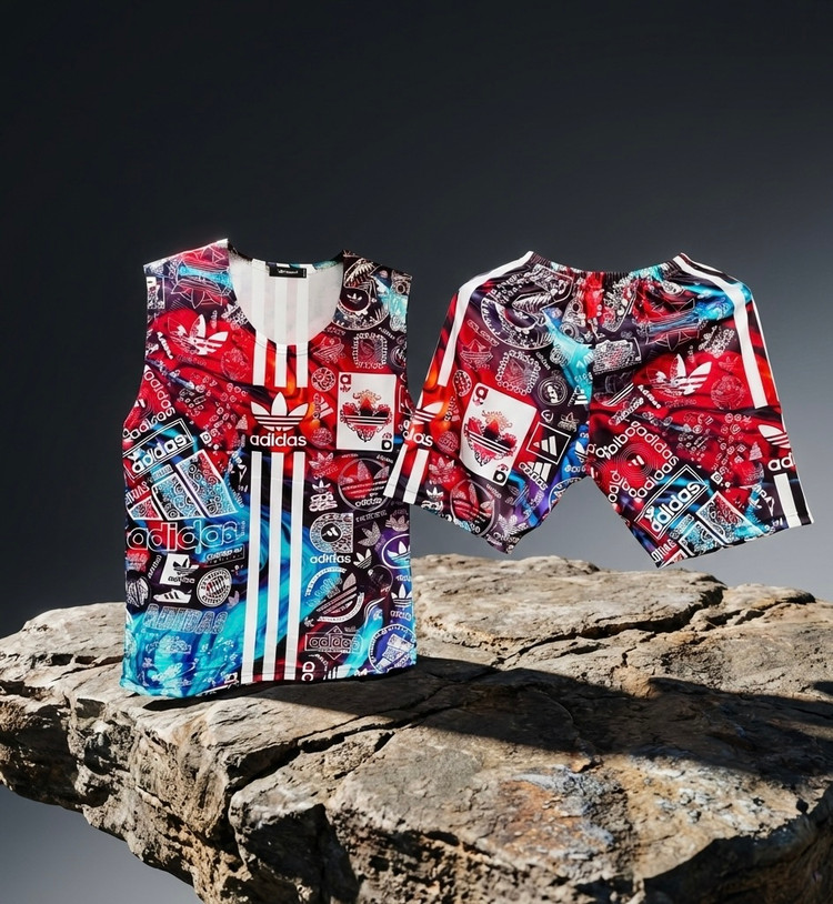 ست تاپ و شلوارک کشی تمام چاپ ادیداس adidas (فری سایز )