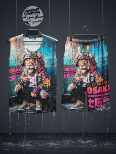 ست تاپ و شلوارک مردانه تمام چاپ شیر اسپرت